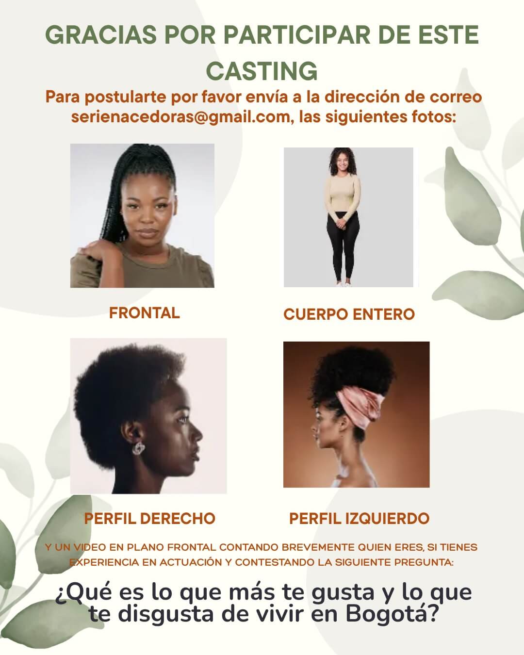 Artistas jovenes afrocolombianas que quieran actuar.